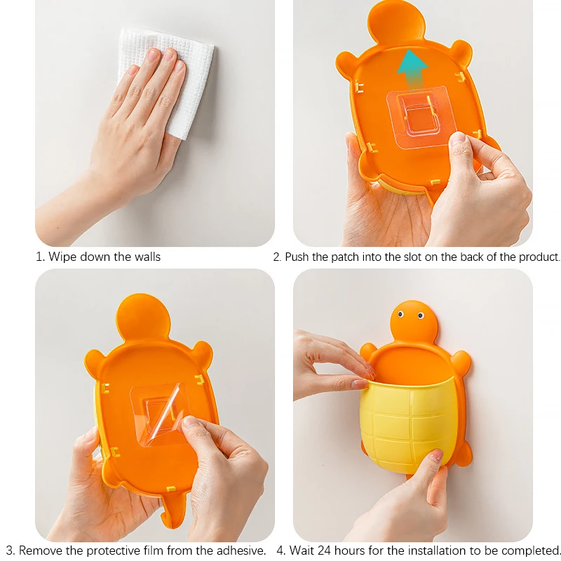 1PCS Cute Toothbrush Storage Rack,Self-adhesive/Suction Cup Creative Cartoon Bathroom Organizer Holder,Turtle Holders Home Decor