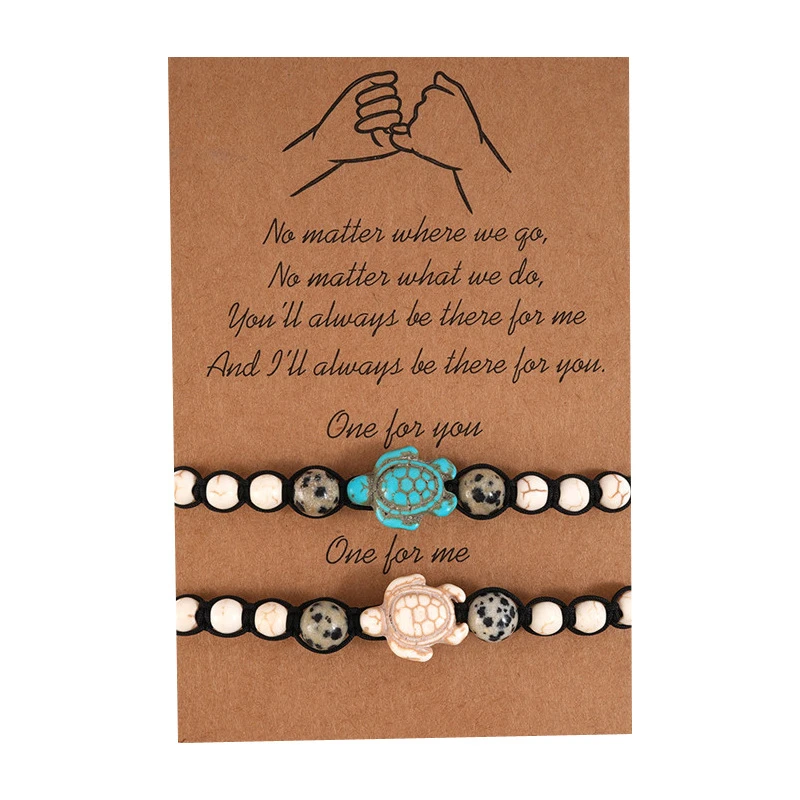 2Pcs New Sea Turtle Beads Bracelets For Women Men turquoise Stone Elastic Friendship Bracelet Beach Jewelry Gifts